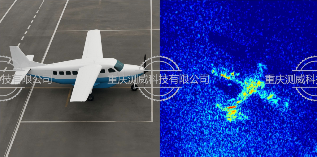 該系統在Ku波段、1GHz帶寬的配置下,對空曠場地中的飛機目標進行了成像實驗。最終成像分辨率達到0.15米×0.15米,驗證了所提算法在真實場景中的有效性與優越性。