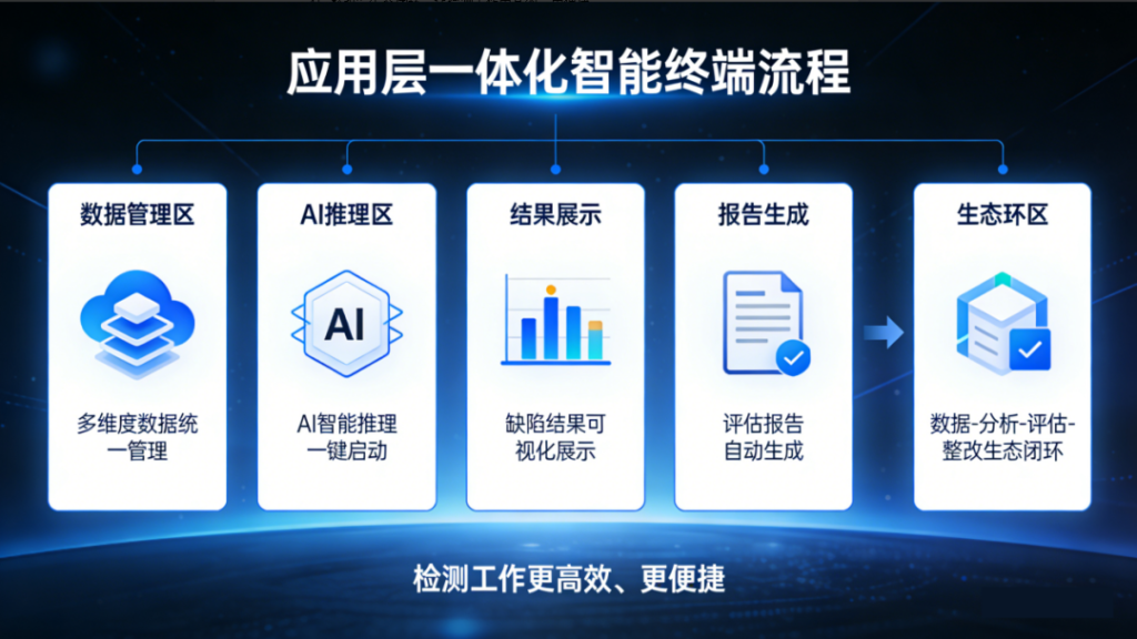 打造一體化智能終端,實現多維度數據統一管理、AI智能推理一鍵啟動、缺陷結果可視化展示、評估報告自動生成,徹底打通“數據-分析-評估-整改”生態閉環,讓檢測工作更高效、更便捷。